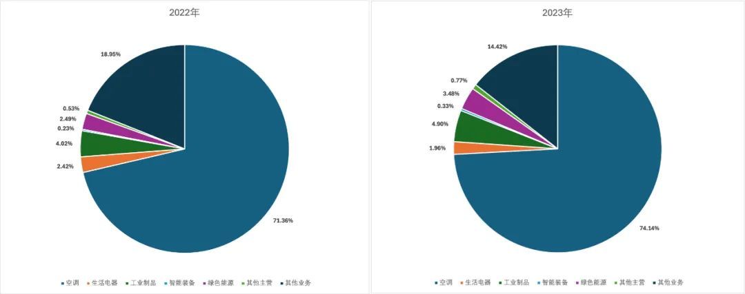 纵不雅格力近10年来的每一步多元化,不论是家电关系的雪柜、洗衣机、厨电等,照旧不关系的手机、医疗设备、预制菜、新动力等业务,险些齐堕入一种谈不上失败但也远算不上凯旋的泥潭中。从收尾上来看,空调如今仍是格力的营收主力,旧年营收占比为74.14%,较2022年的71.36%以至更进了一步。